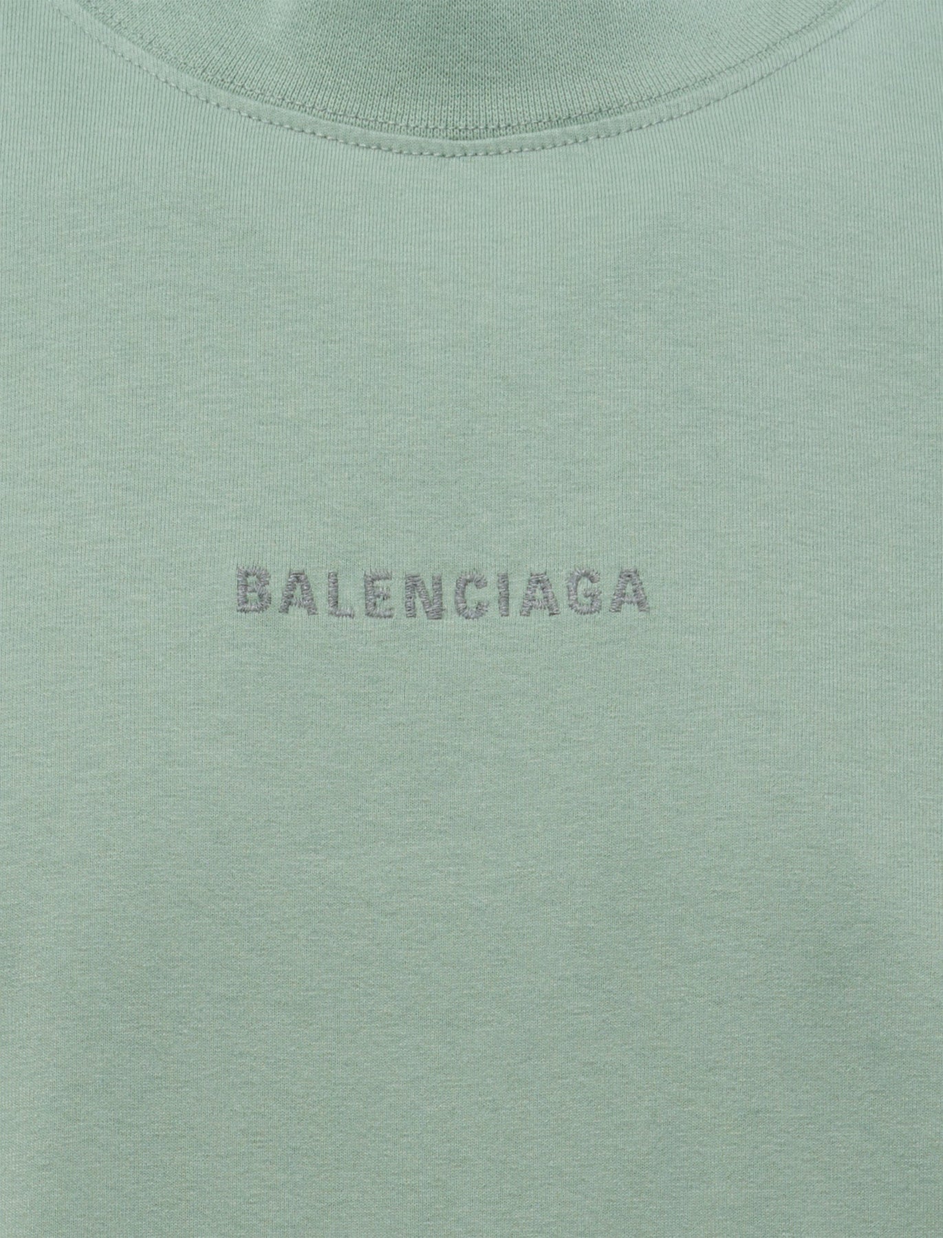 Make a bold statement in Balenciaga’s Back Reflective T-Shirt. Crafted in sage green with a medium fit, it features a sleek reflective logo for standout visibility—day or night. Elevated minimalism meets street-ready edge.