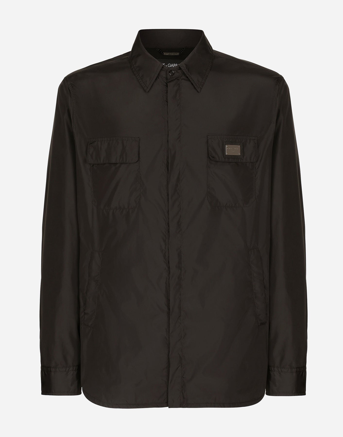 Elevate your outwear with this Dolce and Gabbana over shirt. Constructed from a cotton blend this piece is cut to a slim fit so it is not only comfortable but flattering, accentuating the contours of your frame. The point collar and long sleeves gives this piece a formal flair whilst the pockets give the look a functional feel. Press stud fastening punctuate this piece for ease of wearing whilst the metal embellished logo make for a distinctive finish, giving this look a touch of prestige.