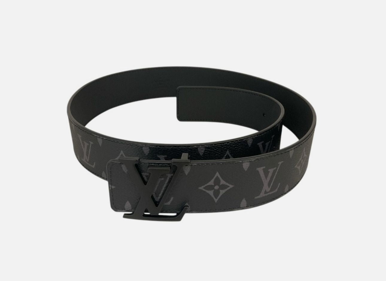 The Louis Vuitton Monogram Eclipse Santur LV Circle Leather Belt is a standard black belt crafted from leather, featuring five belt holes for adjustable sizing.